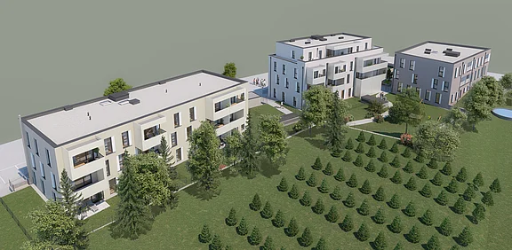 Wir errichten in Hörsching, direkt am Brucknerplatz neben der Kirche, eine Wohn- und Geschäftsanlage bestehend aus drei Häusern mit insgesamt 28 Wohnungen und 5 Geschäftseinheiten
