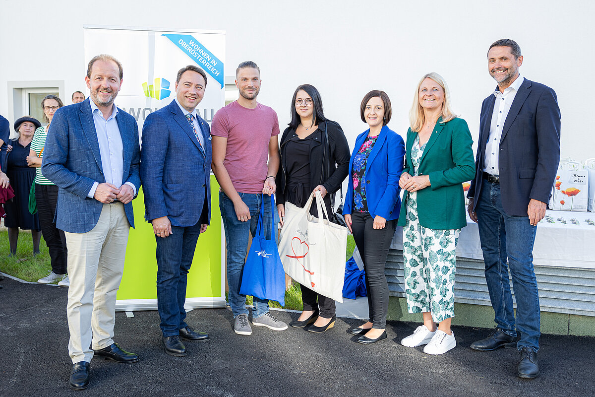 Im Beisein geladener Ehrengäste, wie LH-Stv. Dr. Manfred Haimbuchner, LAbg. Gertraud Scheiblberger, Bürgermeister Andreas Lindorfer, Amtsleiterin Mag. Karin Fellhofer, Geschäftsführer Bmst. Ing. Christian Lang (Gebrüder Lang), Mag. Arch. Christan Frömel (F2 Architekten) und OÖ Wohnbau-Geschäftsführer Mag. Bernhard Baier fand die Übergabe der Wohnhausanlage mit 24 Eigentums- und 26 Mietwohnungen statt.