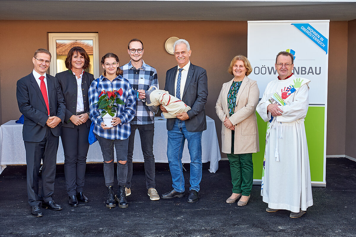 Die Schlüsselübergabe fand im Beisein geladener Ehrengäste, wie Bürgermeisterin Helga Witzmann, Zweite Präsidentin des OÖ Landtags Sabine Binder, LAbg. Bgm. Peter Oberlehner, Diakon Karl Mayer und OÖ Wohnbau-Geschäftsführer Ing. Dr. Jürgen Harich statt.