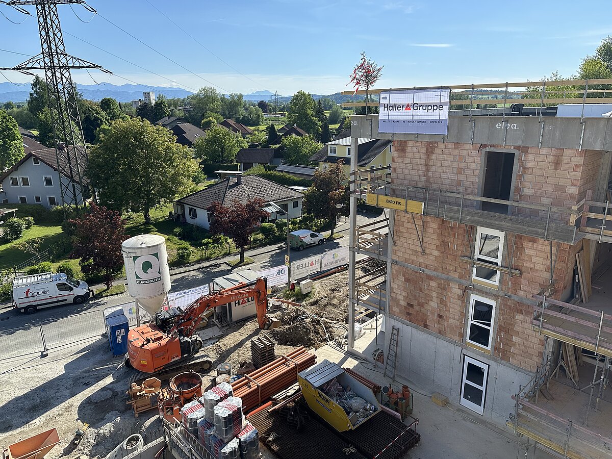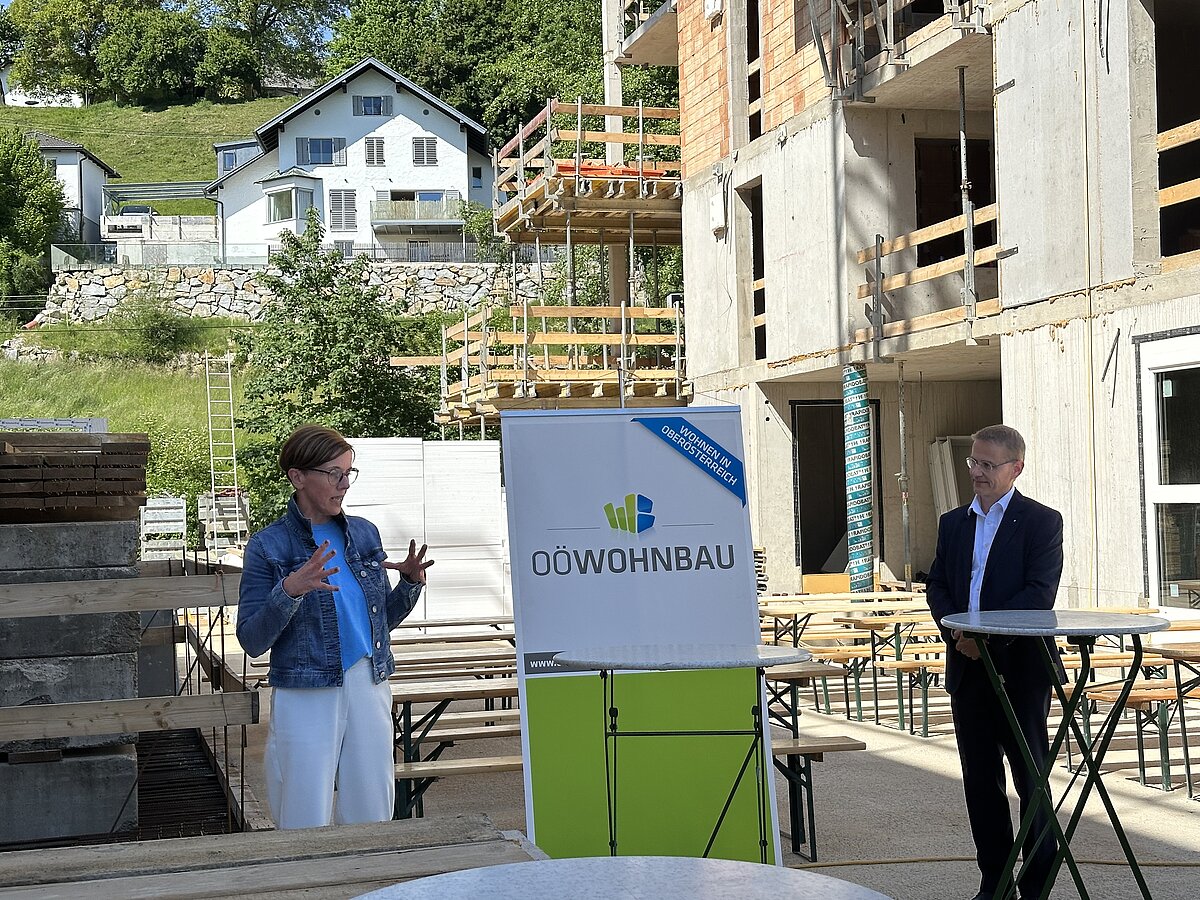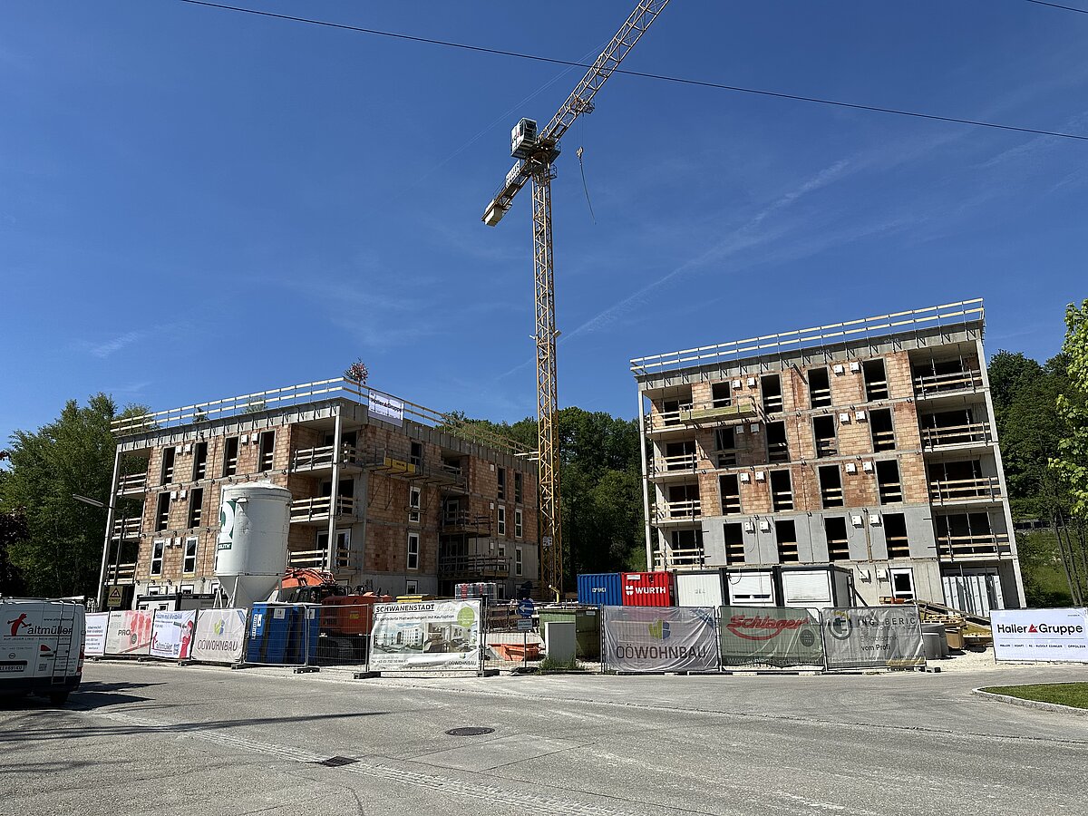 Nach Fertigstellung des ersten Bauabschnitts mit den Häusern 1–3, die 12 geförderte Eigentumswohnungen sowie 35 geförderte Mietwohnungen umfassen, errichten wir nun im zweiten Bauabschnitt zwei weitere Wohnhäuser mit insgesamt 43 geförderten Mietwohnungen mit Kaufoption. Die Gleichenfeier fand am 14. Mai im Beisein geladener Ehrengäste sowie von Mitarbeiter:innen der OÖ Wohnbau und der Baufirmen statt.