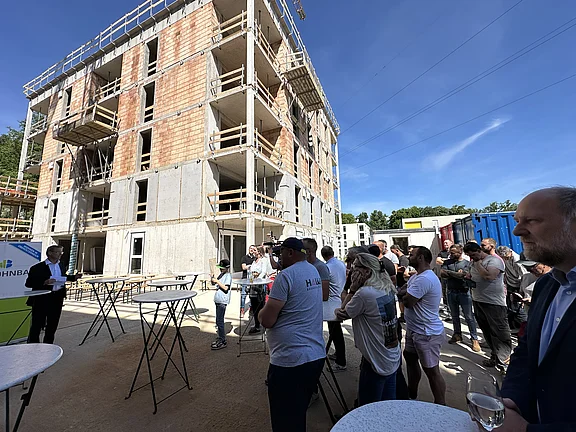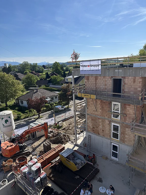 Am 14. Mai fand die Gleichenfeier für den zweiten Bauabschnitt mit 43 geförderten Mietwohnungen mit Kaufoption in Schwanenstadt Alleehof statt