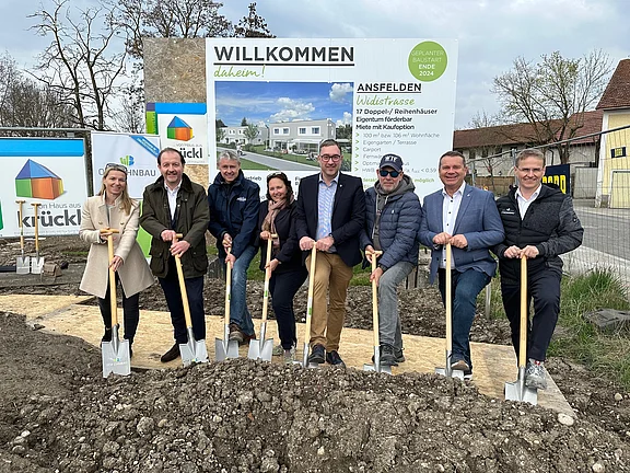 Am 2. April fand in Ansfelden, Widistraße der Spatenstich für den Bau von 13 förderbaren Doppel- und Reihenhauseinheiten statt