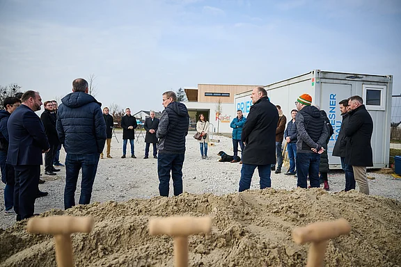 Die Gäste der Spatenstichfeier konnten sich vor Ort ein Bild vom geplanten Bauvorhaben machen und bei einem anschließenden Empfang weitere Details zu den Bauplänen erfahren.