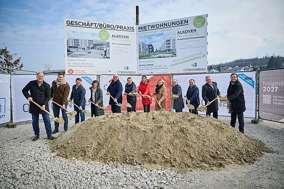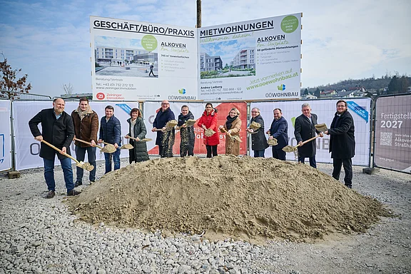 Am 10. Februar fand in Alkoven die Spatenstichfeier für insgesamt 119 Miet- und Mietkaufwohnungen gemeinsam mit der GWG Linz statt