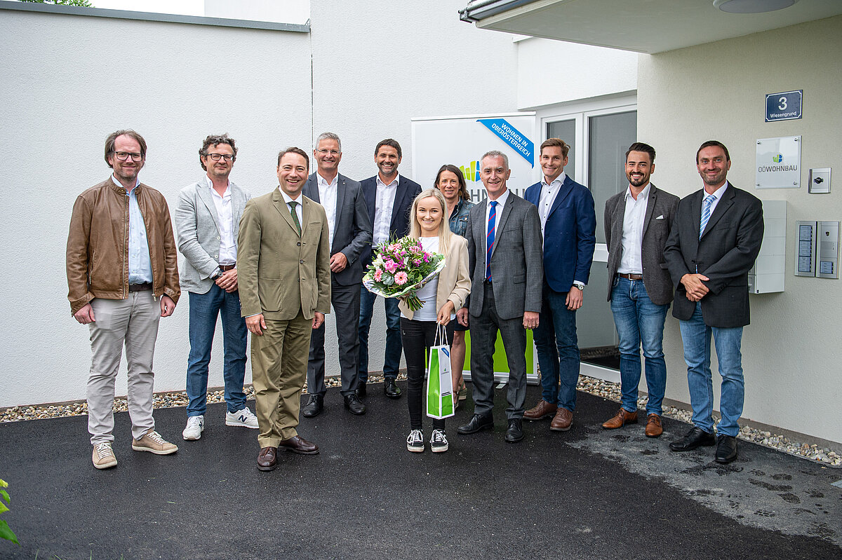 In Rohrbach-Berg haben wir unser Wohnbauprojekt „Rohrbach-Hopfengasse“ mit 26 Eigentums- sowie 14 Mietwohnungen und 15 Wohnungen (Projekt Junges Wohnen) erfolgreich umgesetzt und die Schlüssel an die neuen Bewohner übergeben. Leider war bisher aufgrund der Corona-Beschränkungen keine offizielle Schlüsselübergabe möglich, darum haben wir im Juli zu einem Fototermin mit den Beteiligten und offiziellen Würdenträgern geladen.