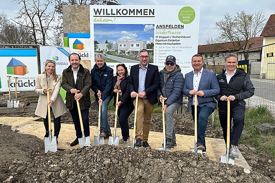 WeiterlesenAm 2. April fand in Ansfelden, Widistraße der Spatenstich für den Bau von 13 förderbaren Doppel- und Reihenhauseinheiten statt